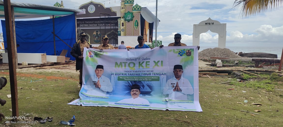 Jelang MTQ XI, Plt. Kadis Kominfostaper Fakfak Meninjau Kesiapan Lokasi dan Pemasangan Spanduk